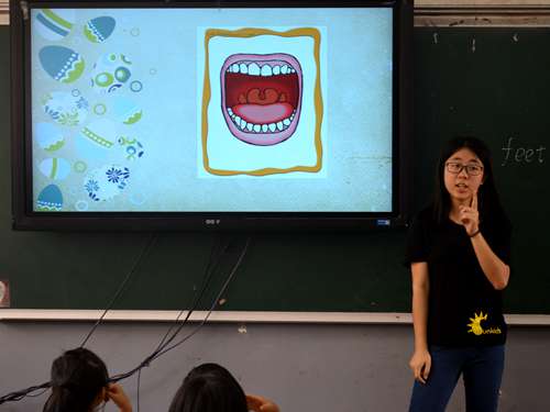 今天是Sunkids来到中山博爱小学正式教学的第6天,天气仍旧炎热,队员一早醒来虽然稍带倦意,但是国际商务英语学院(以下简称“商英”)领导们的来访一下子使队员们振奋起来。