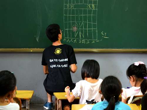 此外,Sunkids还给博爱小学的同学们开设了许多第二课堂。二年级百科上,老师给同学们介绍了地球的。而聚集了众多小棋友的一年级里,老师因材施教,开设了象棋课堂。课堂上尽是“相5进4”之类的跟读声音。低年级小朋友强烈的求知欲感染了在旁听课的所有老师。而以擅长发散性思维的四年级同学,则深深地被推理的魅力吸引住了。环环相接,切忌转移,在老师的引导下,同学们慢慢地掌握了推理的基本准则。