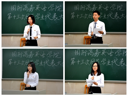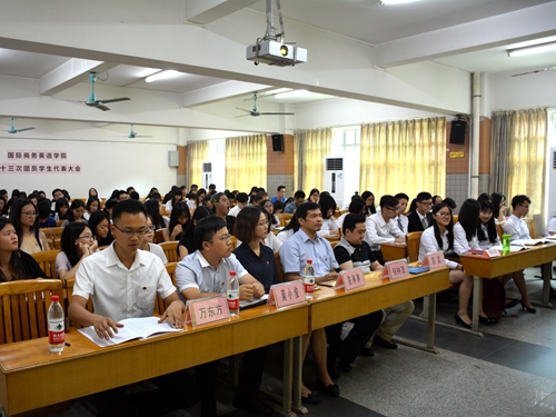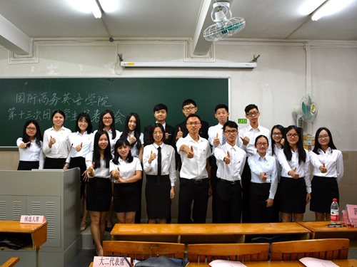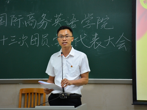 9月22日下午两点,国际商务英语学院第十三次团员、学生代表大会在北二教132举行。校团委书记苏奕、商英学院党委副书记张林茂、院团委书记万东方、2014级辅导员陈琳琳、2016级辅导员莫小俊和各级学生代表参加了本次大会。