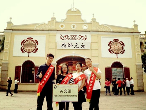 嘉宾团南下期间,正值我校商英志愿文化节。在文化节的博物馆双语讲解大赛中,脱颖而出了几位优秀的选手,获得了在帅府接待嘉宾团的难得机会。