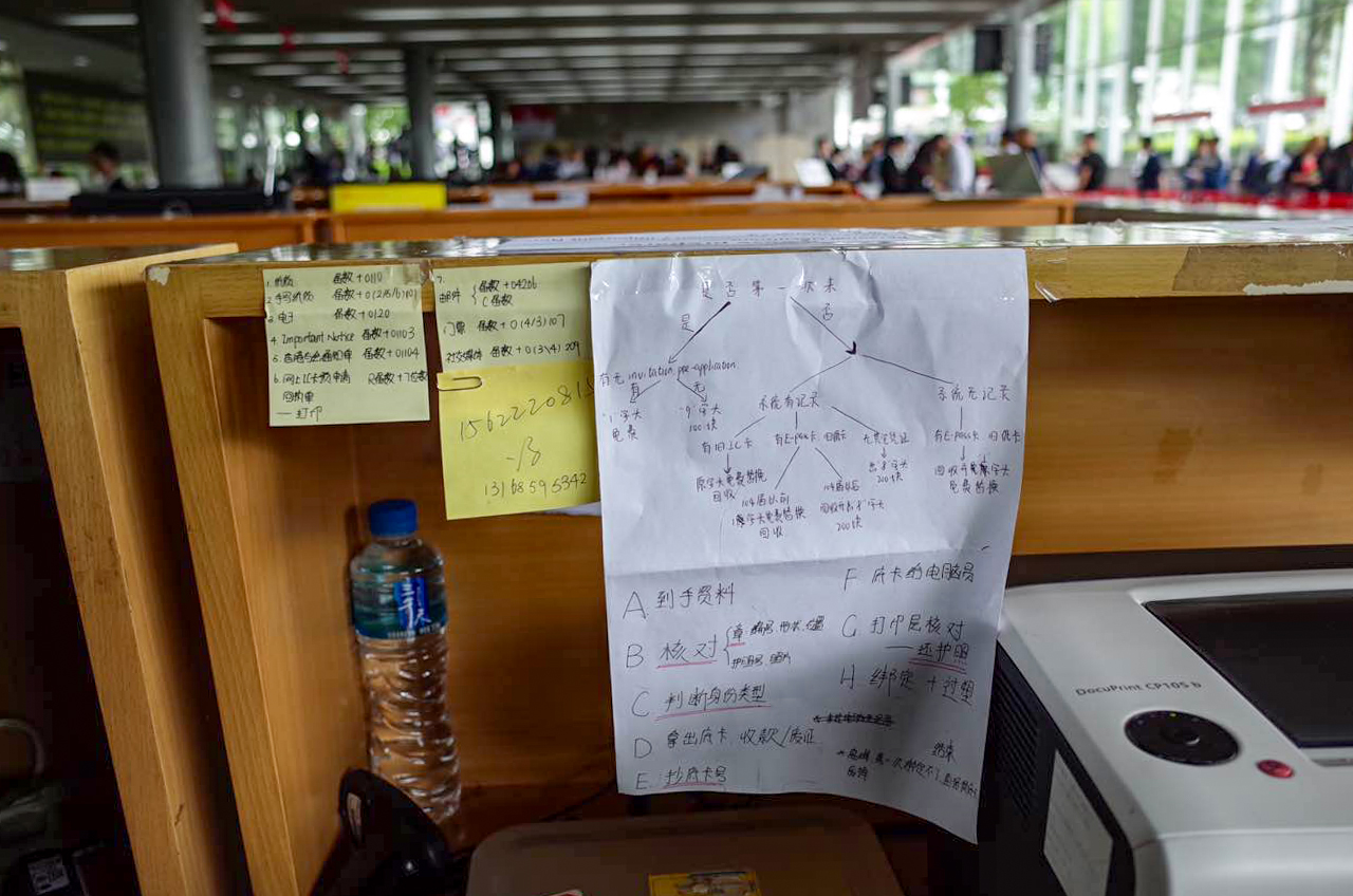 除了办公室和翻译中心,现场助理们的工作也是举足轻重的。现场助理的职责即在前期要负责好个小组的办证中的细节,熟悉办证细节,减少错误率;办证时提高工作效率帮助办证小组处理突发状况。同时,也需要很好地应对现场客商提出的千奇百怪的问题。