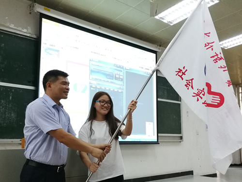 张林茂做动员致辞并为“三下乡”队伍授旗。他表示商英学子在“三下乡”活动中,要充分发挥外语优势,把握专业特色;同时强调一定注意安全,要发挥队伍协作合作能力,服从统一管理,注重创新发展,保持和维护商英人的形象,发扬学校与学院积极进取,健康向上的优良精神风貌。