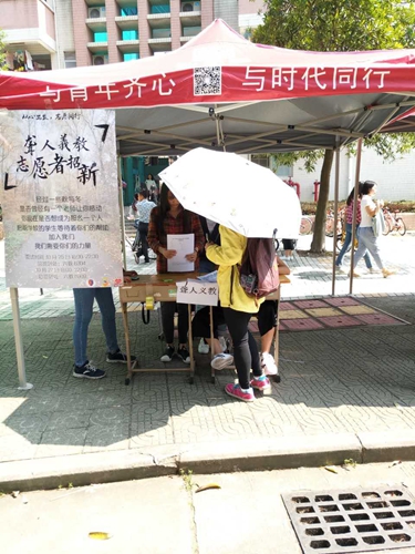 10月23日,聋人义教的摊宣在温暖的阳光下顺利进行,为聋人义教活动招募了一群富有爱心和责任心的志愿者们。
