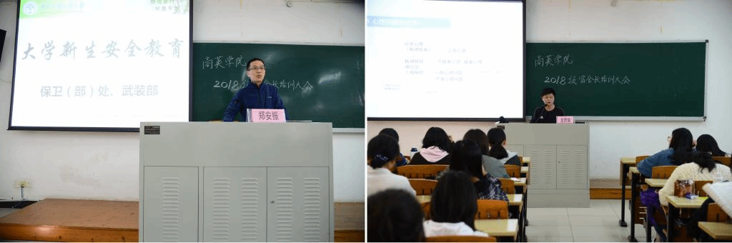 随后,保卫处的郑安振老师与校心理健康与咨询中心的龙贵瑜老师分别就宿舍安全和心理教育进行了深入而细致的讲解,让同学们加深了对校园安全知识的了解,生动形象的例子更让同学们进一步明确自己身为宿舍长所应承担的义务与责任。最后,商英2018级的吴珉浩同学对于宿舍文明建设活动的介绍为本次大会画上了句号。