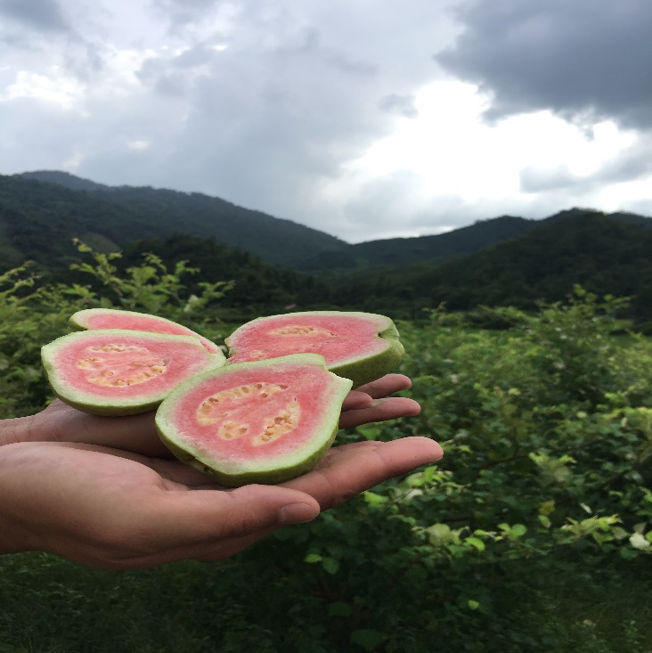 扶贫队队长边带路边向调研服务队成员们展示农产品。刚摘的红心芭乐个大而饱满,切开来汁水充足,味道香甜。扶贫队队长还笑称希望调研服务队员能在朋友圈为当地红心芭乐做宣传,为产品打开销路,调研服务队员欣然答应。