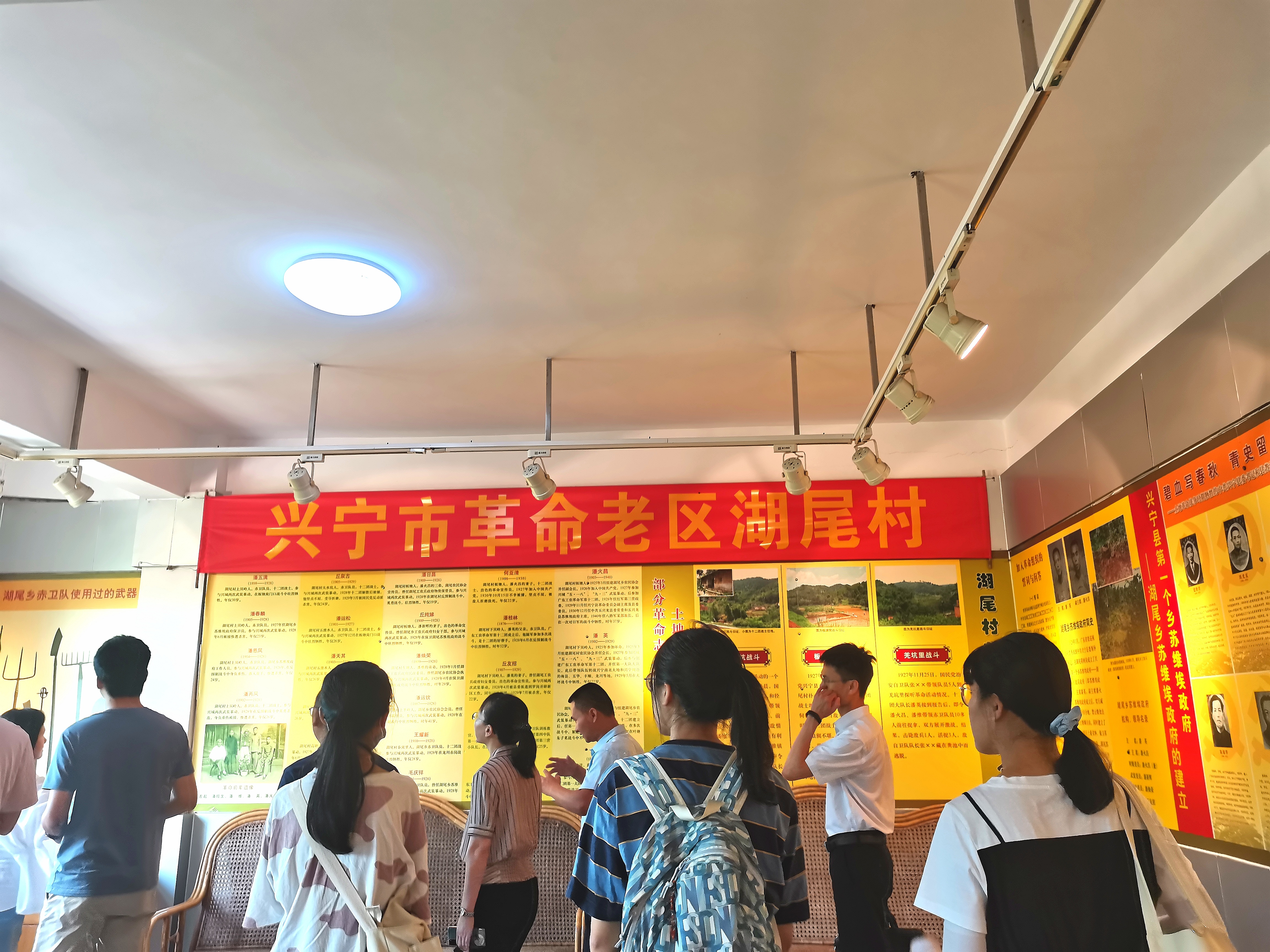永和镇湖尾村是一块革命的红土地,是兴宁土地革命斗争的摇篮。湖尾村革命历史纪念室详细地介绍了第一届中共兴宁县委、第一支工农武装队伍——广东工农革命军第十二团和兴宁第一个乡苏维埃政府的成立过程,展出了赤卫队使用过的武器的图片资料,以及后人收集整理的革命歌谣,生动再现了湖尾村光辉的革命史实。通过参观革命历史纪念室,队员们感受到了革命的不易,学习到了先辈的精神,也点亮了爱国之心。