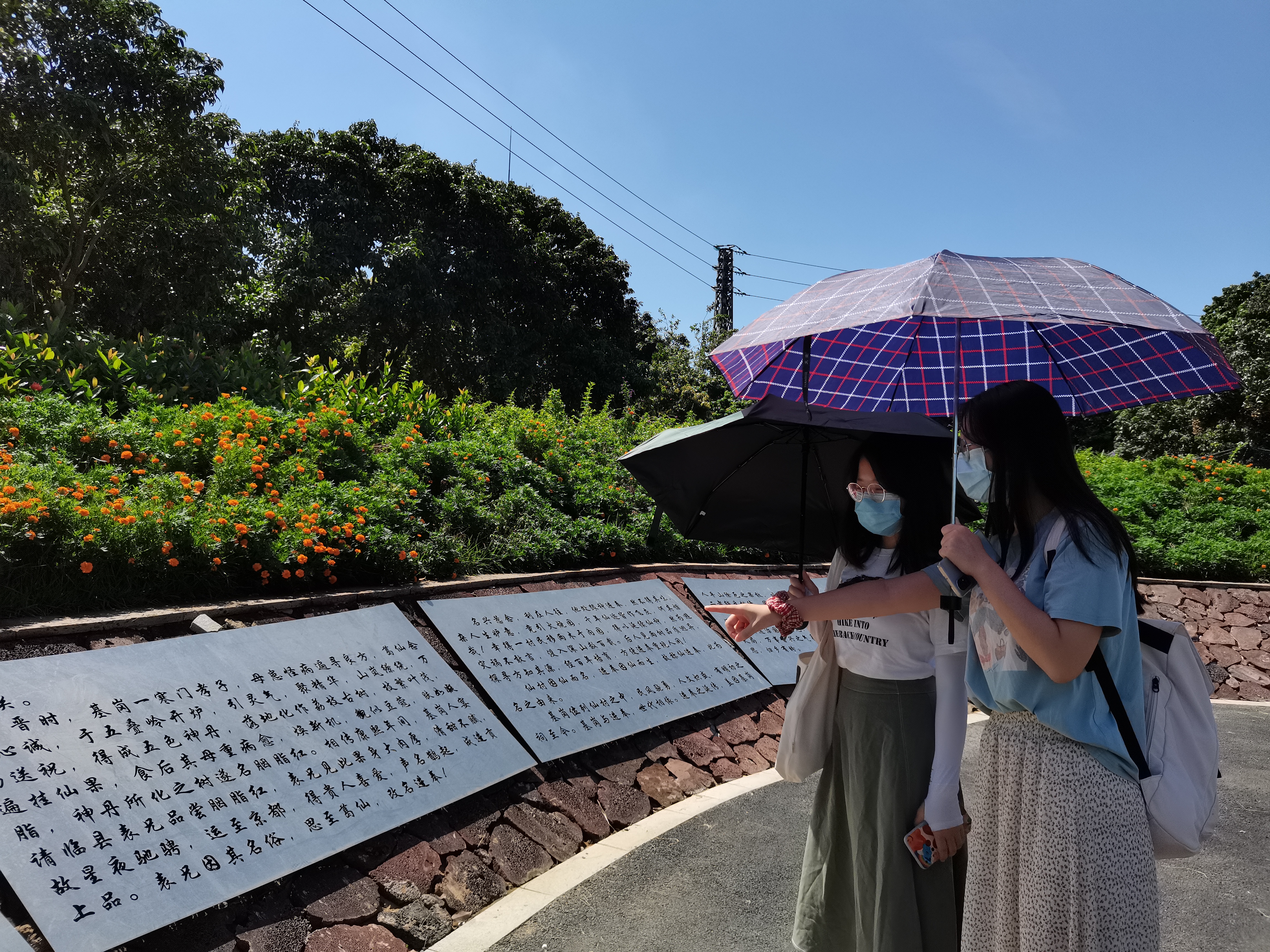 队员们首先拜访了仙进奉古荔枝园,寻访荔枝在基岗村的历史渊源以及调查荔枝种植户的营收状况。荔枝园内花团锦簇,树上果实累累,着实是一派生机勃勃的景象。荔枝园中心的铭牌上篆刻着仙进奉荔枝从诞生到闻名的历史故事,为荔枝园增添了几分历史文化气息。