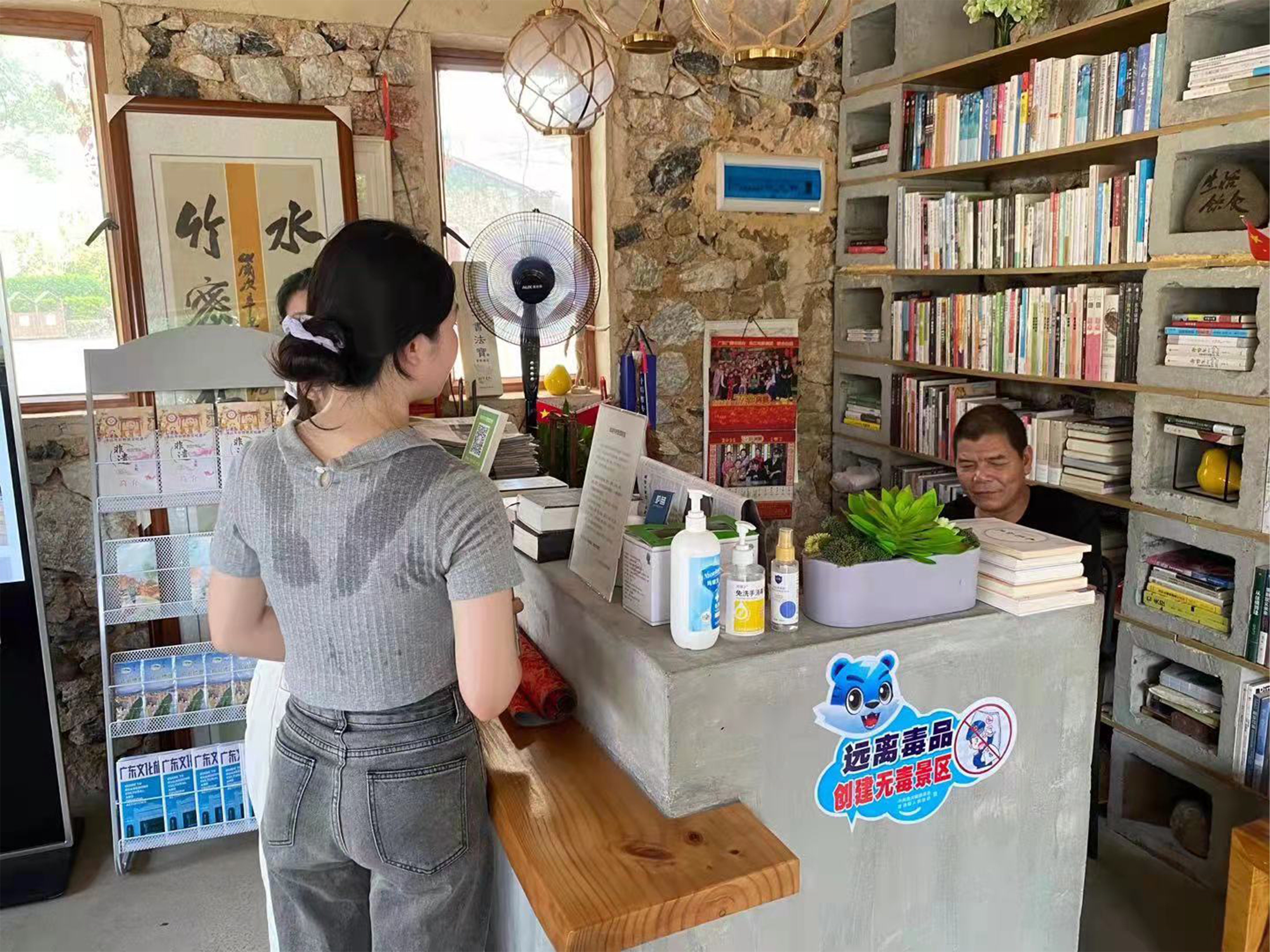他告诉队员们,书吧是公益的产业,在这里村民可以免费看书。书籍有些来自清远文化局,也有来自各地的捐款。这些书目都已纳入清远图书馆系统,实现了高效管理。先前受到疫情影响,书吧客流量有所减少,但随着疫情得以控制,最近来访的客人逐渐恢复往常数量。