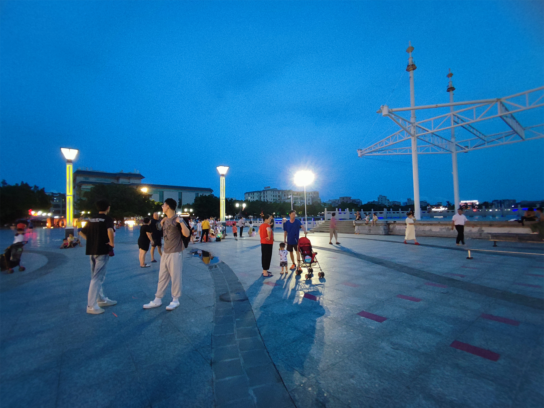 晚上19:00,队员们步行前往雷州西湖公园。这是一座风景秀丽,人文荟萃,集自然风光、贤踪圣迹和各种游乐项目于一体的园林式综合性公园,苏轼、苏辙和秦观等著名历史人物曾游历此湖,置身于园中,队员们能深切感受到雷州的独特民俗风情和文化氛围。西湖附近的人流量密度非常大,这有利于队员们开展采访和问卷调查工作。