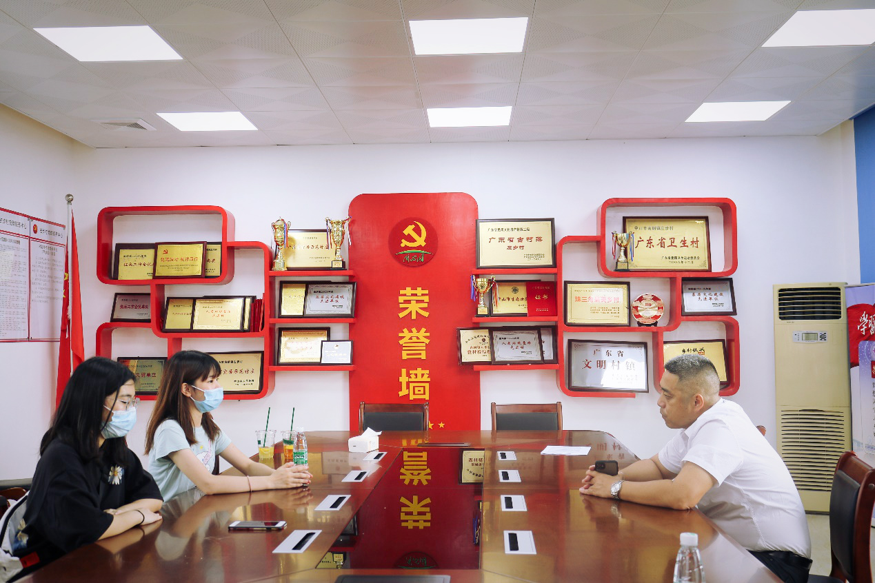 队员们顶着炎炎夏日,在实地参观、发放问卷、采访村民中加深了对左步村的了解。结束参观历史文化建筑后,雷欧服务队的队员们来到了左步村村委会,对左步村村委书记林庆标进行了深入的采访。林庆标先向队员们介绍了左步村近年发展的基本情况,同时也提及了左步村依靠“党建+乡村游”主题发展的优势。首先是左步村保留了原始的村落环境,环境优美的村落与所在的地貌、山水等自然风光和谐统一。另一优势是村落保留了一些红色资源。左步村是孙中山以及革命家欧初的故乡,拥有丰厚的人文化底蕴。左步村充分利用两大优势,将特有的红色资源与优美环境结合发展“党建+乡村游”,助推乡村振兴。值得一提的是,在走访的过程中,队员们留意到左步村保留了大片农田。在如今许多乡村旅游发展过度商业化、环境破坏严重的大背景下,这是难能可贵的。对此村委书记表示,当年左步村也是放弃了城镇化的发展,保存了原生乡村样貌,做到乡村开发与自然环境保护“两手抓”,尽量避免乡村旅游过度商业化开发,以休闲旅游为主,不希望过度干扰村民的生活。
