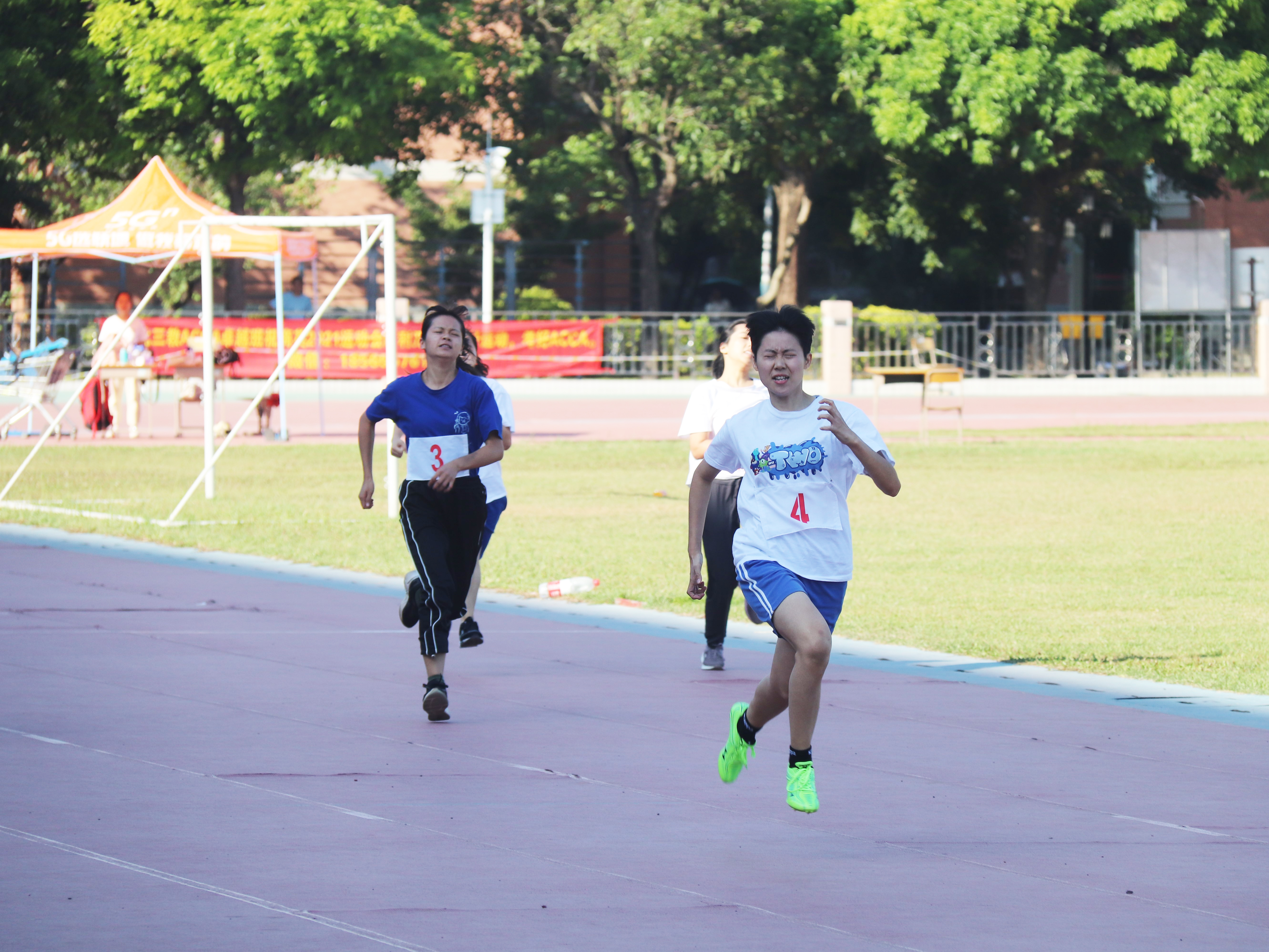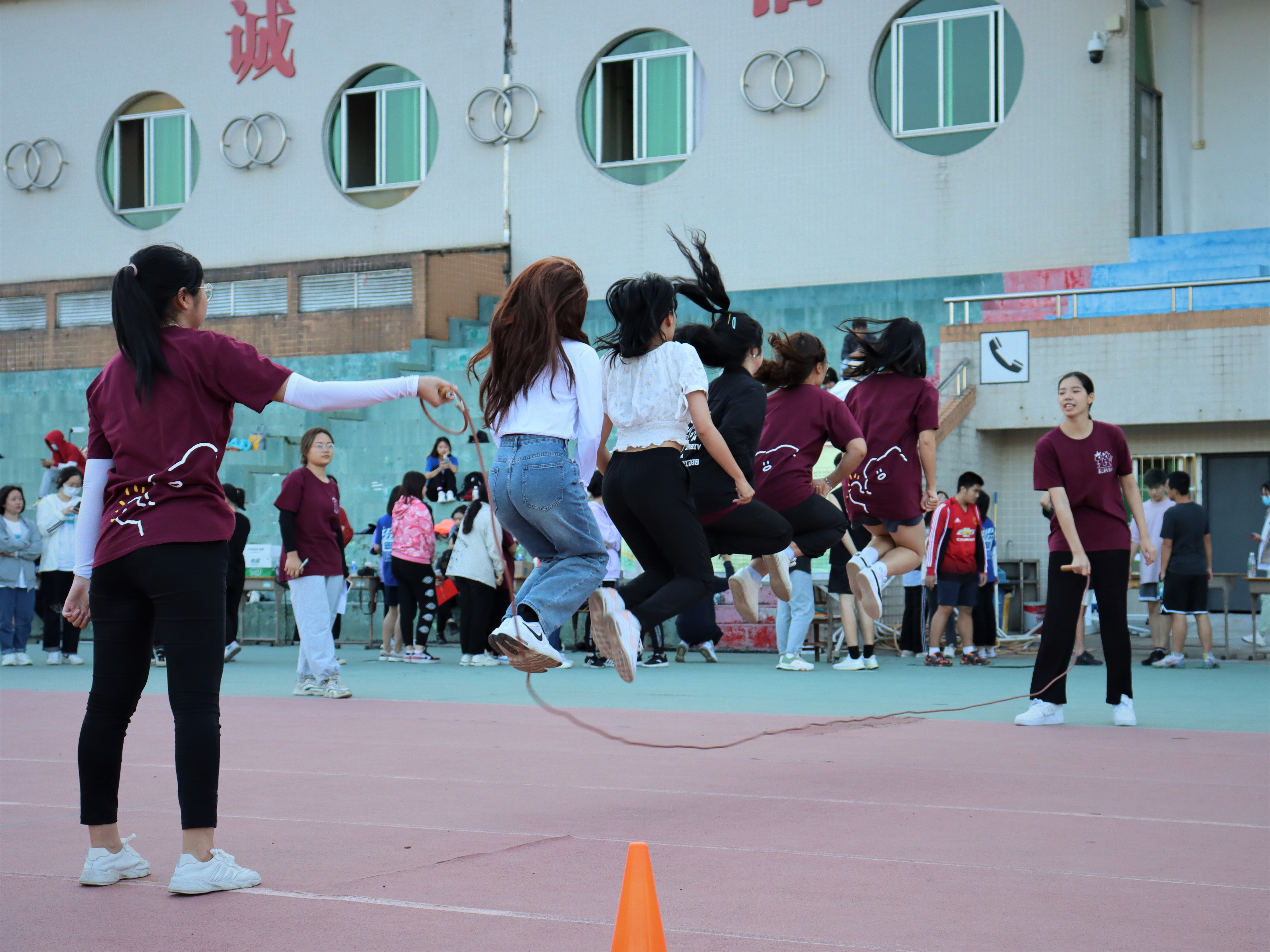 在开场的方阵表演中,同学们通过精心编排,以舞蹈,武术等形式为现场观众带来一场视觉盛宴。在田赛场上,运动员们有序参与,奋力起跳;在跑道上,运动员全力向前,燃烧青春;在赛场下,同学的加油呐喊声此起彼伏,为运动员注入勇气与力量。