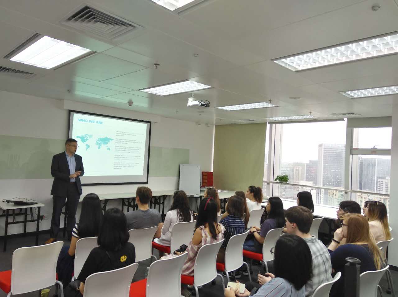 此外,考文垂大学师生与我院师生一同参观了英国驻广州总领事馆文化教育处的办公室。该处办公室主任为大家详细介绍英领馆文教处的三大职能:英语教育及考试、文化艺术、教育与社会,并欢迎英国及欧盟的学生参与国际留学和实习项目,促进中英友好关系和文化的共同进步。整个过程师生踊跃互动,考文垂学生表示这样的机会非常难得,今后会积极关注相关的交流项目。