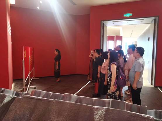 在中国国家版本馆广州分馆副馆长钱国富及展厅专业工作人员的陪同和讲解下,党员同志们一起集中观看了广州国家版本馆宣传片《印象文沁阁——广州国家版本馆揽胜》和何镜堂院士对广州国家版本馆建筑设计的解析。中国国家版本馆广州分馆以“中华典藏、岭南山水、时代新韵、文明灯塔”为总体设计理念,集中体现了岭南文化特色特点。在讲解员的引导讲解下,师生党员重点参观了 “红色印记、映照初心——红色广东专题版本”,重温了中国共产党在广东团结带领人民进行革命斗争的光荣历史,从我们党走过的道路来深入理解中国共产党人的初心和使命,在回望历史中将清正廉洁、为国为民融入自身的价值观。此外,党员同志还参观了馆中其他专题展览,从建筑、影像、藏品、讲解中感受了中国文化的源远流长和中华优秀传统文化的魅力。