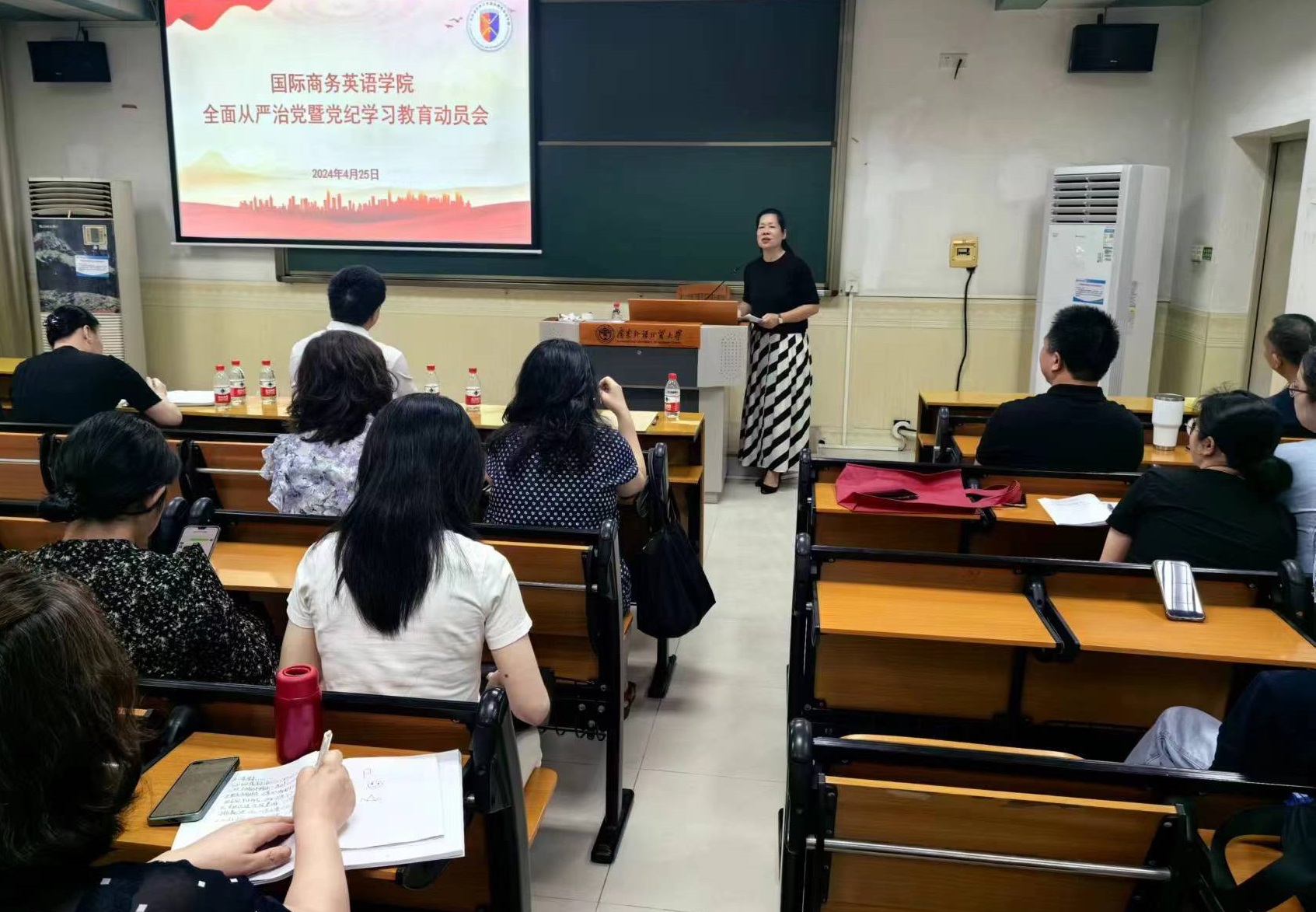 4月25日下午,商英学院在四教424召开2024年全面从严治党工作会议暨党纪学习教育动员会,学院领导班子成员和全体教职工参加会议。