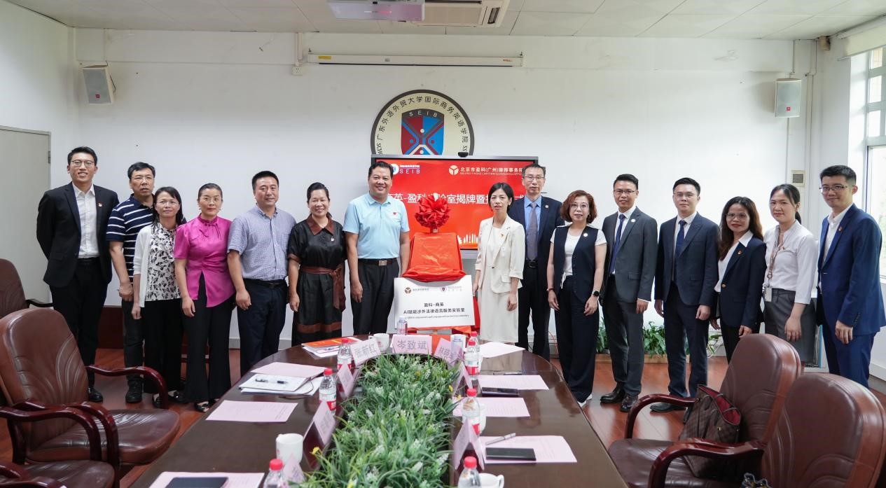 双方在教学实践等未来合作方面进行了热烈而积极的讨论,并达成系列共识。陈金诗部长和邱晓纯主任作为代表为盈科-商英AI赋能涉外法律语言服务实验室举行揭牌仪式,并共同参观盈科律所捐赠的AI律所智能空间站。