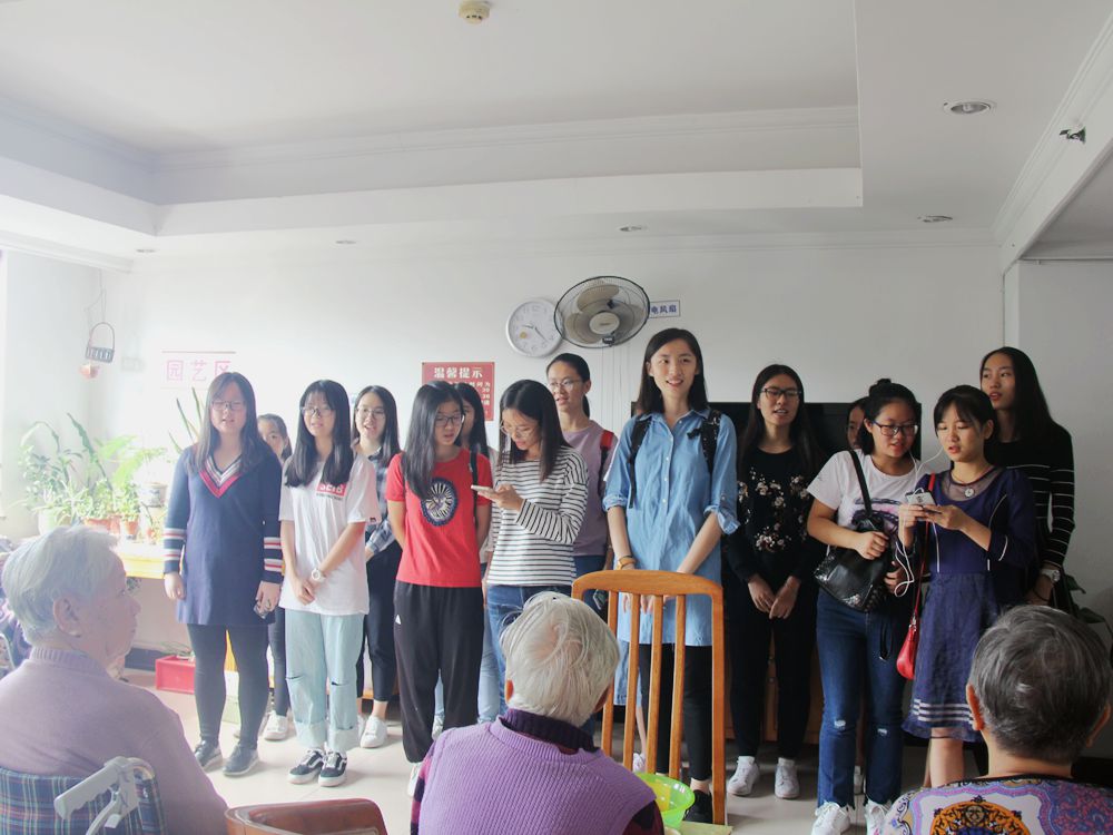 “感恩的心,感谢有你。”和着从敞开的窗外吹来的徐风,肩并肩立在淡白的光线下的志愿者们轻轻地为老人们唱起一首《感恩的心》。老人静静地听着这首耳熟能详的表达着感恩、感激之情的歌,静静地凝望着同学们年轻而朝气蓬勃的脸庞,也许是回忆起了心中弥足珍贵而值得感恩的人和事。