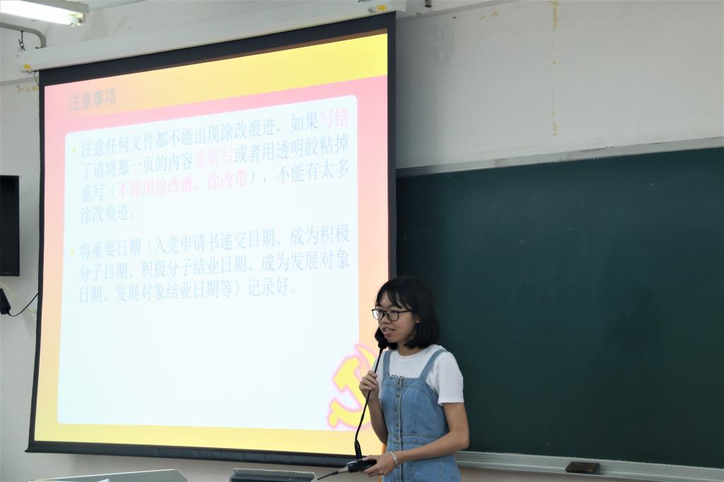 动员讲话后,学院党建办公室的何春杏同学对第48期积极分子及第8期发展对象的分组情况、党校教学管理规定、注意事项以及课程安排进行详细介绍和具体说明。