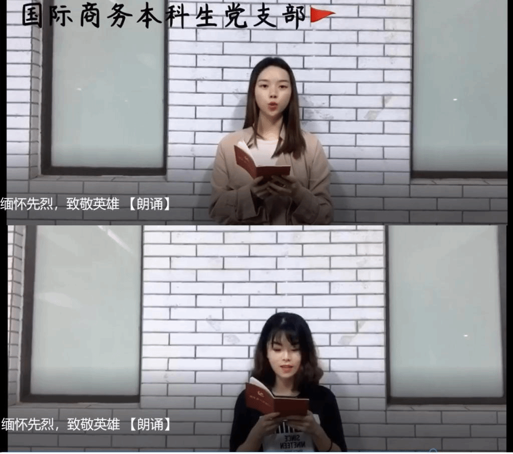 月底,诗歌朗诵也热烈展开,以吕倩媛、方圆、梅芸同志及李君铭、林淳、车可莹为两个党小组展开。诗歌朗诵抑扬顿挫,铿锵有力,同志们在朗诵中缅怀先烈,致敬英雄!