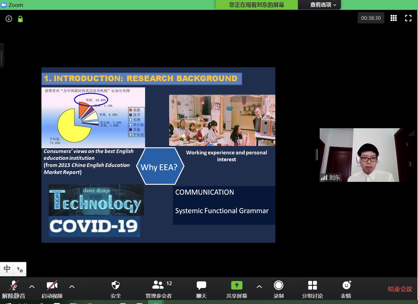 (第9答辩组 刘东同学进行研究课题陈述)