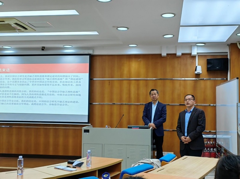 2023年11月23日下午,东北师范大学二级教授、博士生导师,现浙江工商大学特聘教授,国务院政府特殊津贴获得者,曾任东北师范大学副校长、中国语用学专业委员会副会长、教育部外语专业教学指导委员会委员及英语专业分指导委员会副主任委员、吉林省英语专业教学指导委员会主任委员张绍杰教授应我院的邀请,在白云山校区MBA楼103教室进行了著名教授论坛第 619 讲,题为“跨世纪的追问: 中国的语言研究何以缺乏理性思维和理论建设”。本次论坛由国际商务英语学院副院长刘平教授主持。广外冉永平教授等校内外专家学者及博士和硕士研究生都积极参加了本次论坛。