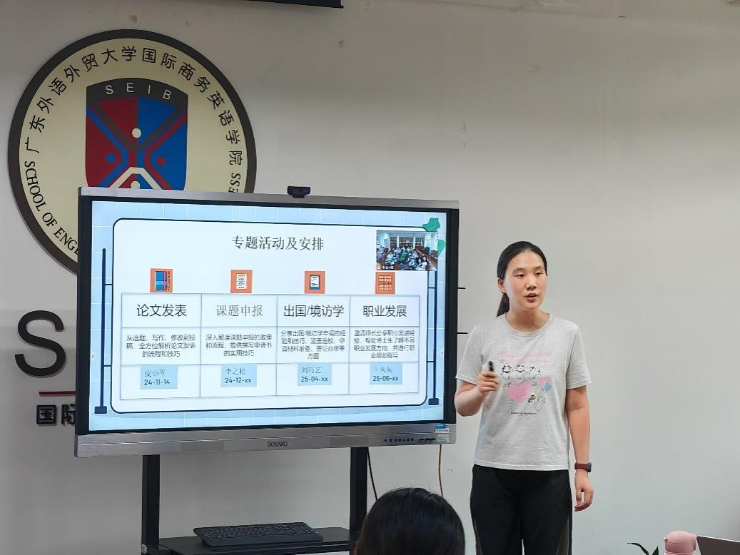 11月14日15时,广东外语外贸大学国际商务英语学院“博研拾光”(PhD Moments)第一期学术交流活动于北3教318召开。本次交流活动由在读博士生皮小军主持,张曼教授作为特邀嘉宾作主题演讲,学院副院长陈潇潇参加了此次活动,硕博研究生、访问学者参会聆听学习。活动伊始,陈潇潇副院长代表学院对本次学术活动的召开致开场辞,鼓励大家积极参与,各抒己见。随后,皮小军博士以自身经历生动地引出了本次学术活动的主题,即如何进行学术写作和如何找到合适的期刊进行发布。