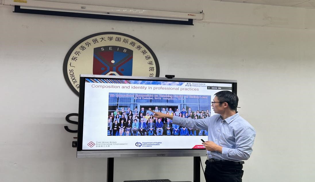 2024年11月15日至16日,广东外语外贸大学国际商务英语学院主办的海外名师项目《多模态语篇分析与翻译研究》第二讲至第四讲在北校第三教学楼318室举行。项目主讲人为香港理工大学英文与传意学系副教授、博士生导师冯德正老师。该讲座由本项目负责人吕洁副教授主持,商英、高翻和英文学院多名教师、研究生和访问学者聆听了本系列讲座。