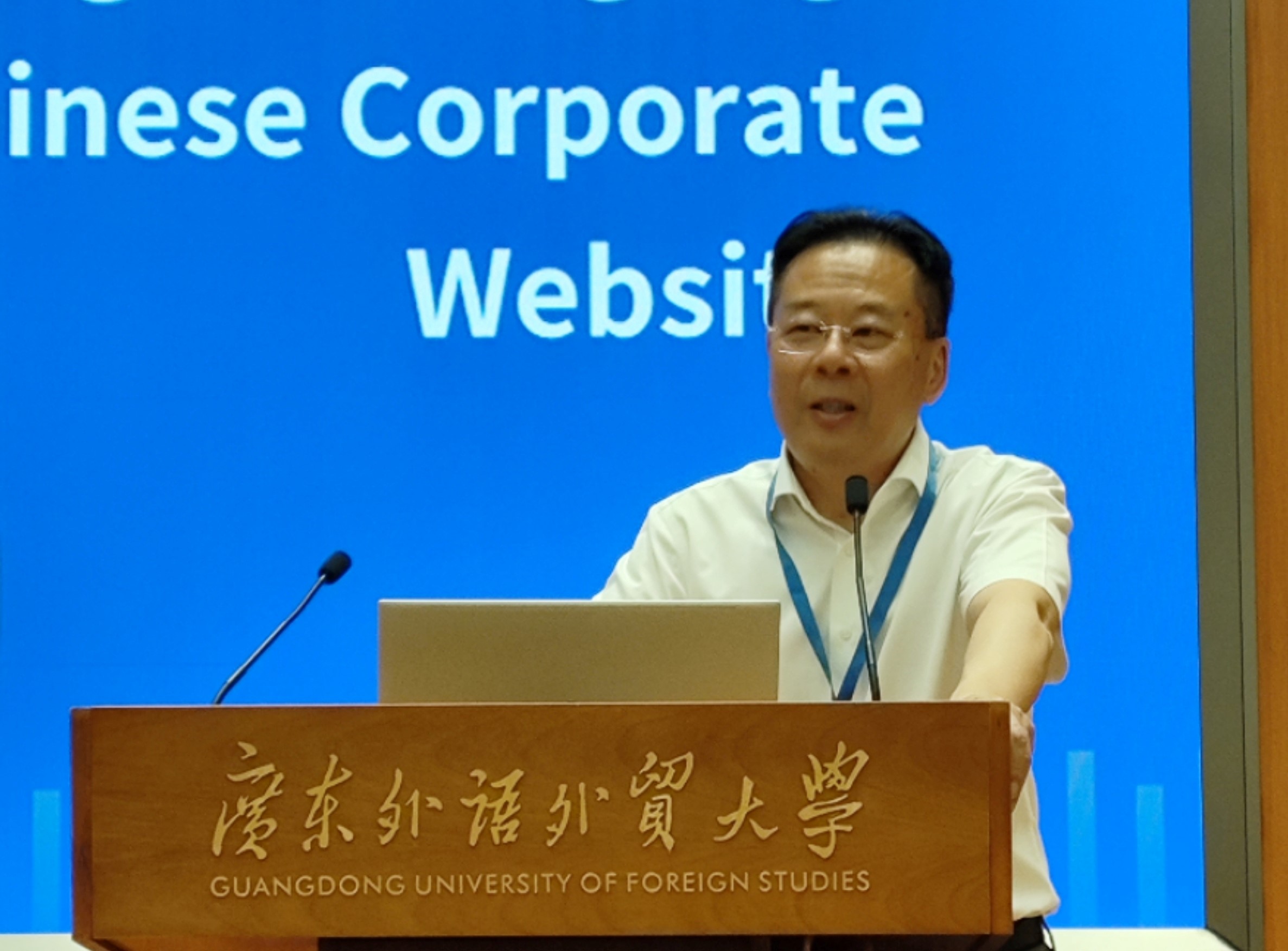 北京语言大学王立非教授分享题为“中企网站数字语言传播力的评价及影响实证研究”的成果。他指出,当前中国百强企业网站存在语言多样性不足与技术更新滞后的问题,英文覆盖率仍待提升。他建议加强多语种内容建设、加快信息更新节奏,并结合AI技术优化传播路径。