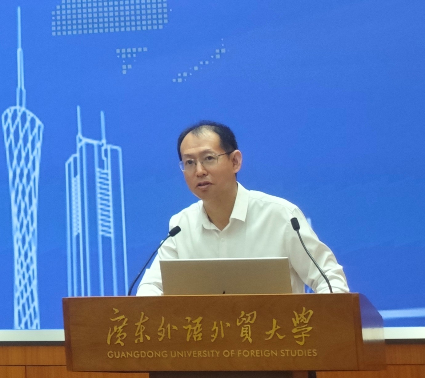 6月12日上午,大湾区企业传播高端国际论坛(广东外语外贸大学会场)在广东外语外贸大学行政楼三楼国际会议厅隆重举行。来自海内外的四位主旨演讲人针对大湾区经济发展和企业国际传播热点话题分享观点。