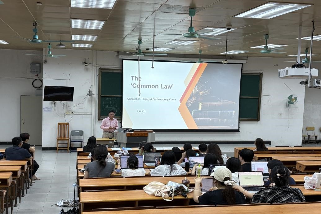 在“英格兰普通法基础”讲座中,徐教授从英格兰普通法的起源讲起,详细阐述了其发展历程、基本原则以及在当今英国法律体系中的地位。“判例法系统与原则”讲座里,徐教授深入剖析了判例法的运作机制,讲解了判例法原则在司法实践中的应用技巧,引发了师生们对判例法与成文法差异的深入思考。