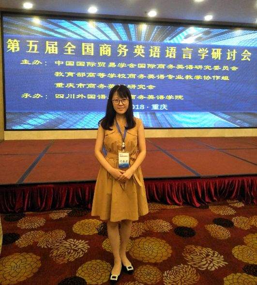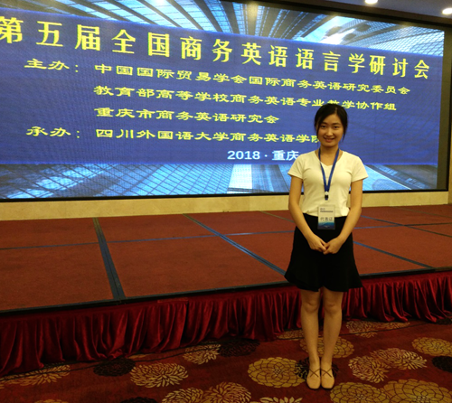 2018年3月18日-20日,由中国国际贸易学会国际商务英语研究委员会、教育部高等学校商务英语专业教学协作组、重庆市商务英语研究会联合主办,《现代外语》和《外国语文》期刊协办,四川外国语大学商务英语学院承办的第五届全国商务英语语言学研讨会在重庆举行,我院博士生潘杰婧、硕士生高洪苗参加研讨会并作小组发言,所宣读的论文均荣获论文一等奖。本次研讨会设置工作坊、主旨发言和小组发言三个环节,其中出席本次大会并作主旨发言的专家教授有:王立非教授、吴东英教授、陈新仁教授、胡开宝教授、冉永平教授、章宜华教授、吕世生教授、王仁强教授、段玲琍教授。