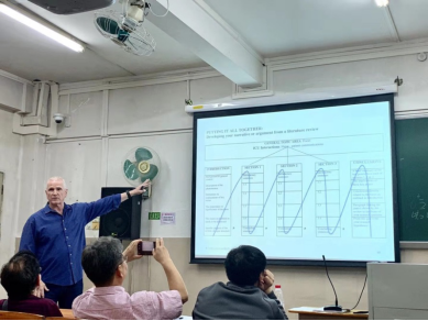 在讲座后,袁传有教授对本次讲座进行了总结。他高度称赞了Terry Royce教授的学术与教学热情,认为本次讲座是对各位同学的及时帮助。同时,他预告了接下来的一系列讲座。同学们对这场学术盛宴仍意犹未尽,讲座后跟Royce教授继续交流。让我们共同期待下次学术盛宴的到来。