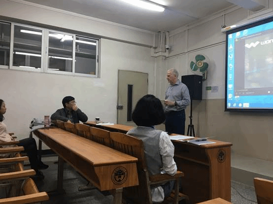 12月18日晚,法律语言学专题系列讲座第四讲在我校北校区二教131教室顺利开展,这是本专题的最后一讲。承接上一讲内容,本次讲座Royce教授继续聚焦警察危机谈判,法律英语系主任张新红老师、张少敏老师、商英学院的硕博士及访问学者均参与其中。