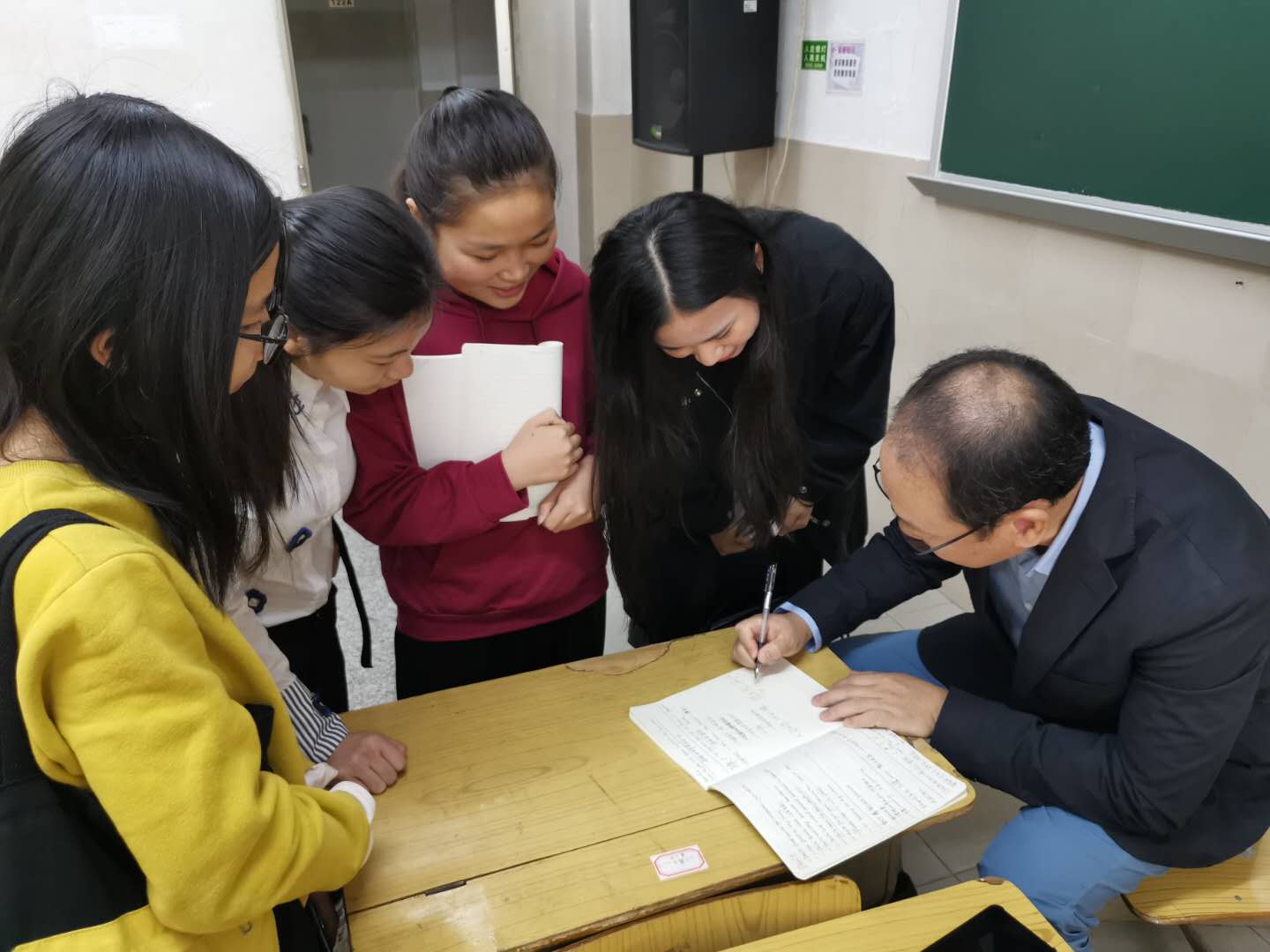 与在场学生进行互动