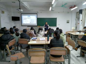 1月9日上午,谢师兄深入浅出地讲述了“外贸员的一天”,以及通过各种相关场景的假设,启发同学们思考问题、解决问题,并创造性地提出了“管、控、诊、断、定”外贸五字方针的内容和运用。