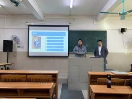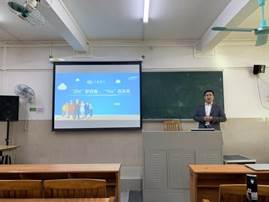 2021年1月12日下午,国际商务英语学院英语教学部教学实践周第三场讲座的主讲嘉宾为兴业银行广州分行人事监察部培训经理杨朝,讲座题目为“‘Zhi’梦青春,‘Yin’在未来”。讲座由英语教学部主任汪谓超主持,大一至大三年级约30名同学们参加。