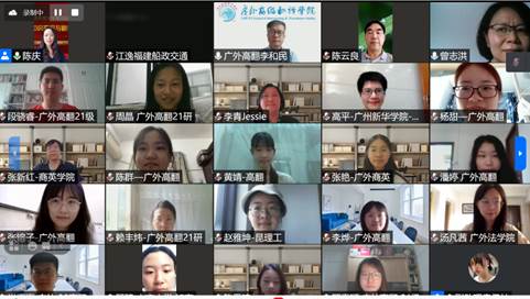 2021年7月19日上午8:30,为期五天的“2021年知识产权与翻译工作坊”线上培训如期拉开了帷幕。本次学术培训活动由广东外语外贸大学高级翻译学院和广州开发区知识产权协会联合主办,广外黄埔研究院协助指导,广外翻译学研究中心、广外法学院、广外国际商务英语学院和广州市泰领翻译服务有限公司等单位协办。出席开班仪式的领导、专家和老师有高翻学院的李和民书记、广外黄埔研究院执行院院长李青教授、广外法学院院长陈云良教授、广州开发区知识城国际知识产权促进会执行会长曾志洪、本次活动的组织者高翻学院的陈庆老师分别致辞。商英学院法律英语系张新红主任和周亮老师等五位师生出席了开班仪式并全程参加了本次活动,其中两位老师还分别主持了第二天和第四天的授课活动。有关高校、律所、专利代理机构和法律翻译公司多位专家也出席了开班仪式。报名参加此次活动的师生主要为广东外语外贸大学高翻学院、法学院和商英学院的师生,其他高校对知识产权翻译感兴趣的师生,总人数共计80多名。