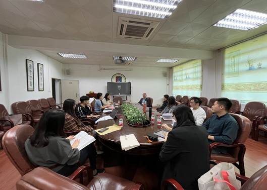 年度高层次项目申报指导会,广东外语外贸大学外国语言学及应用语言学研究中心冉永平教授应邀针对国家社科项目申报作项目选题与写作指导。会议由国际商务英语学院刘平教授主持,多名教师参会。