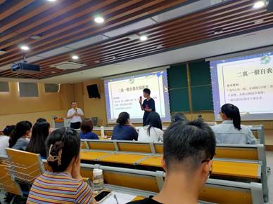 讲座正式开始前,康蕾老师向同学们介绍了主讲人谢泉江师兄,并介绍了本次商务演讲培训对我院学生的重要意义。