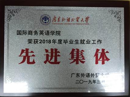 2019年3月商英学院获得广东外语外贸大学就业工作先进单位
