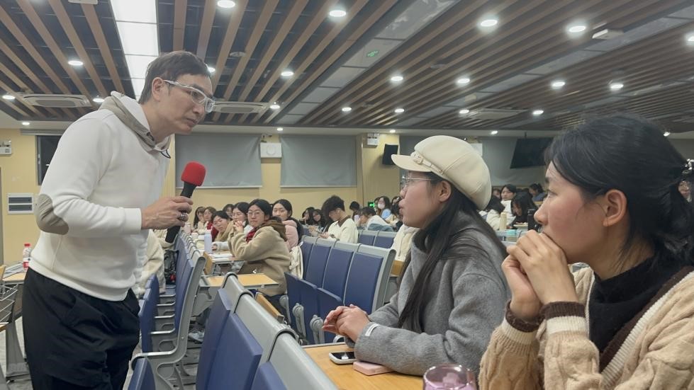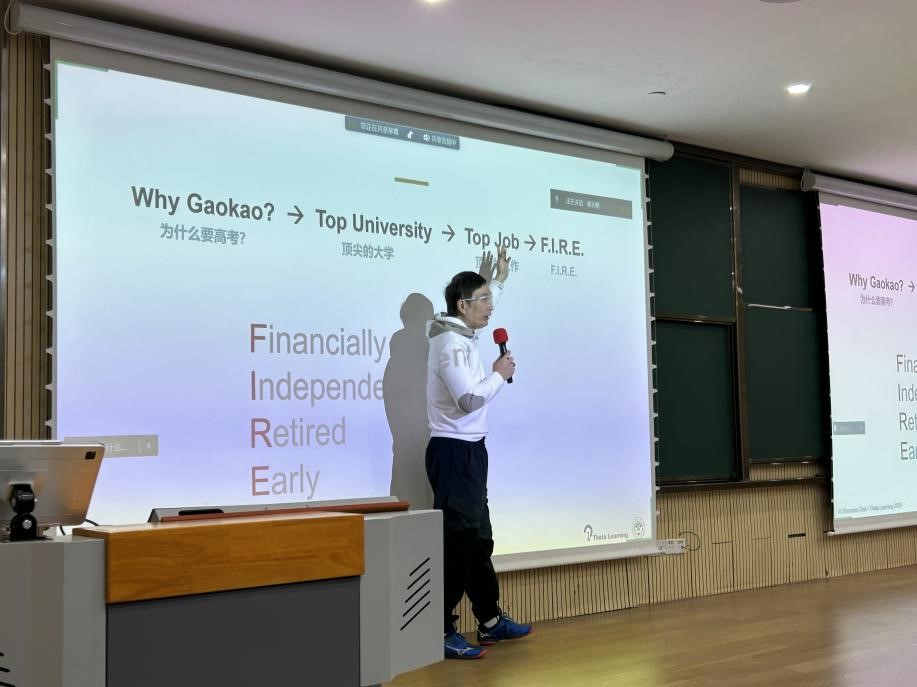 讲座过程中,Sherman老师介绍了大学生未来可能会面临的一些困惑,特别是职业选择和人生发展道路选择,他通过自身经历和学生案例向大家展示了选择不同道路可能会出现的情况,并向同学们传授了许多人生经验和处事智慧。