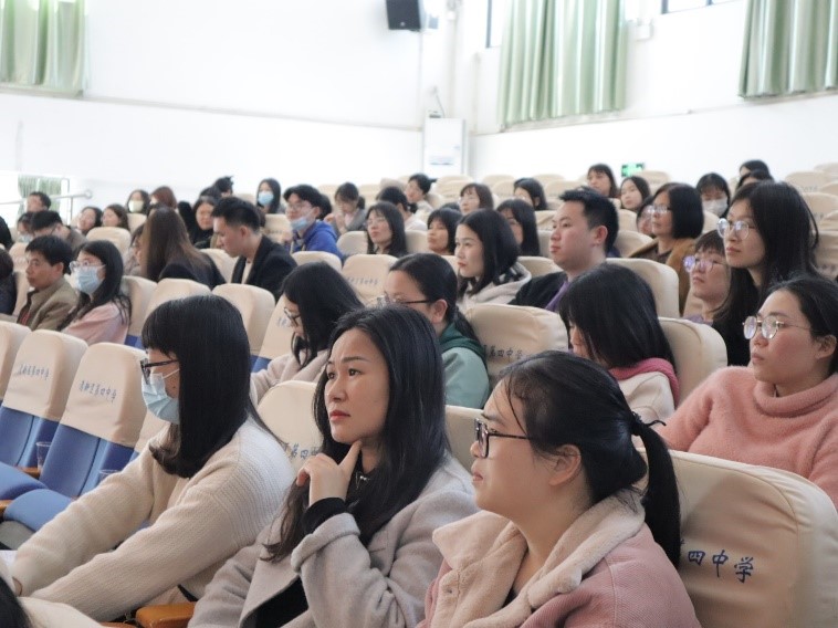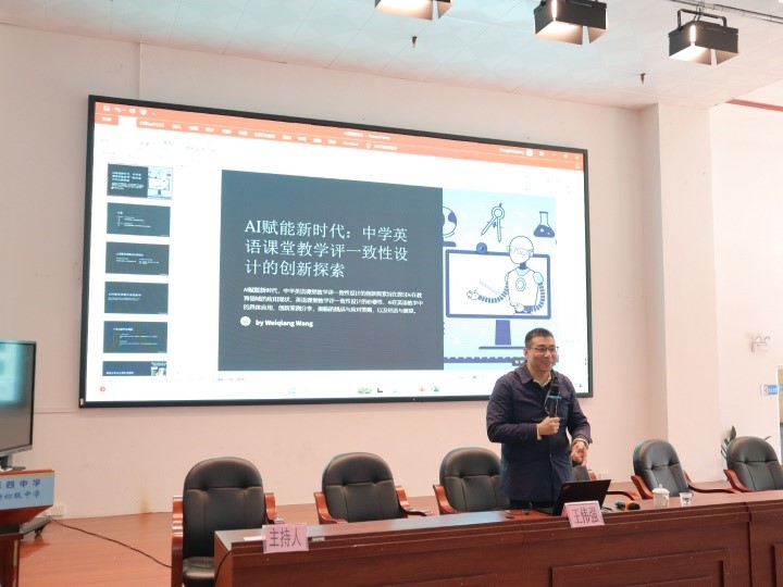 在清新区第四中学学术报告厅,王伟强老师针对于清远市第一次中考听说合考的学情,为初中老师们带来了题为“AI赋能新时代:中学英语课堂教学评一致性设计的创新探索”的精彩讲座。清新区第四中学黄中安书记致欢迎辞,会议由清新区教师发展中心张美仪老师主持,共194名老师参加了学习。