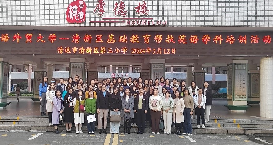 为推进实施全口径全方位融入式结对支持粤东粤西粤北地区基础教育工作,广东外语外贸大学国际商务英语学院充分发挥外语学科优势,组织专家团队赴清远市清新区开展教育帮扶,助力外语教育高质量发展。