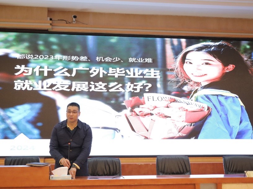 讲座结束后,王伟强老师赴清新区第一中学开展本科招生宣讲,出席宣讲会的有:教育局系统妇联副主任江瑞琼、清新区教师发展中心张美仪、陈盈滢,清新区第一中学德育处主任张学君,以及清新区第一中学全体高三学生。宣讲会上张学君主任致欢迎辞,王伟强老师向同学们展示了广外的就业优势,以及各大学院的特色,并着重介绍了商英学院的双学士项目,现场气氛热烈,宣讲会取得了良好效果。