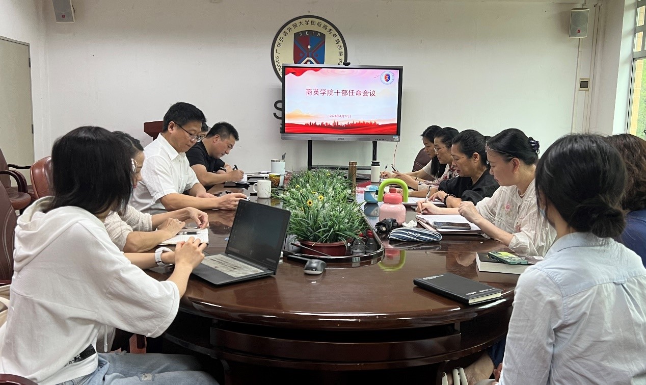 4月22日下午,商英学院在三教318会议室召开干部任命会议,院领导、系部办主任(党支部书记)参加会议。会议由学院党委书记苏冬燕主持。