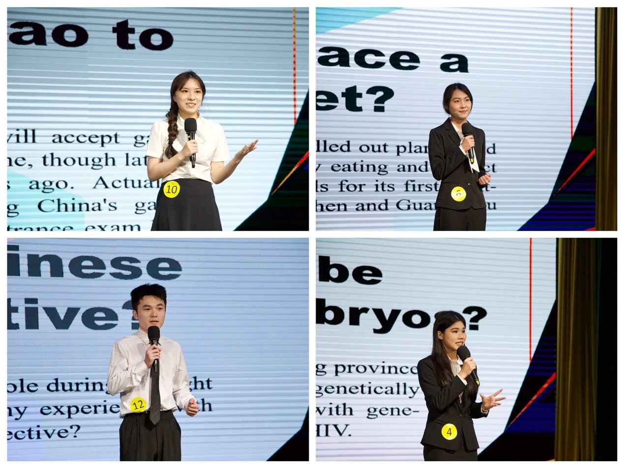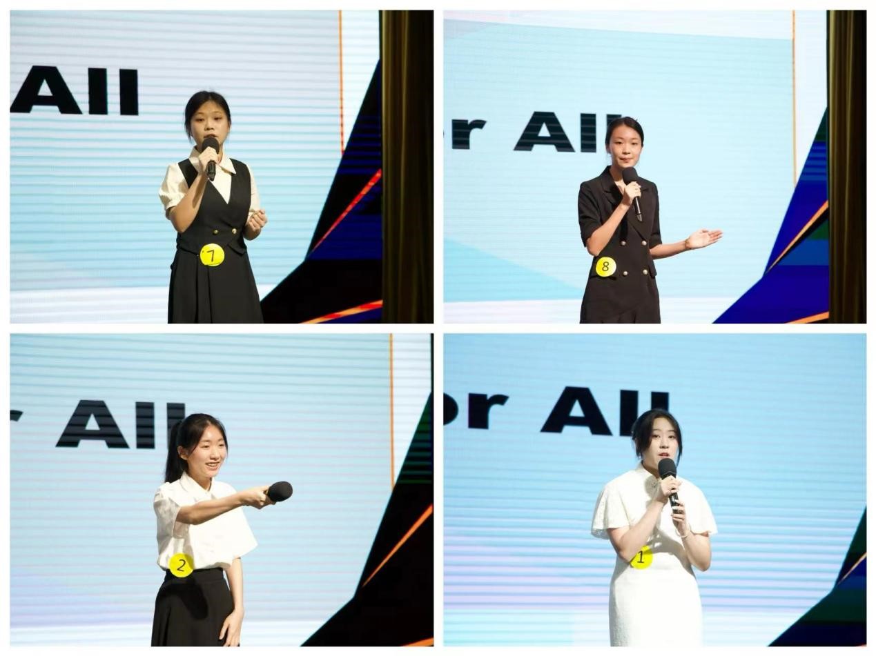 比赛分两轮进行,第一轮为命题演讲,本次大赛主题为“Opportunities for All”,参赛选手们需要在舞台上进行三分钟脱稿演讲并在演讲结束后回答评委们提出的问题。这一轮不仅考验选手们的表达能力,还考验选手们的思考能力、临场应变能力。12位选手们从中国国情出发并与国际接轨,从线上教育、中药文化传播、全球粮食问题等方面表达了自己对主题的理解和感悟。各位选手或结合亲身经历,或引经据典来表达自己的观点。选手们精彩的演讲引起观众们的广泛共鸣。在后面的评委提问环节,各选手根据评委的问题,结合自身的经历与想法都做出了令人满意的回答。