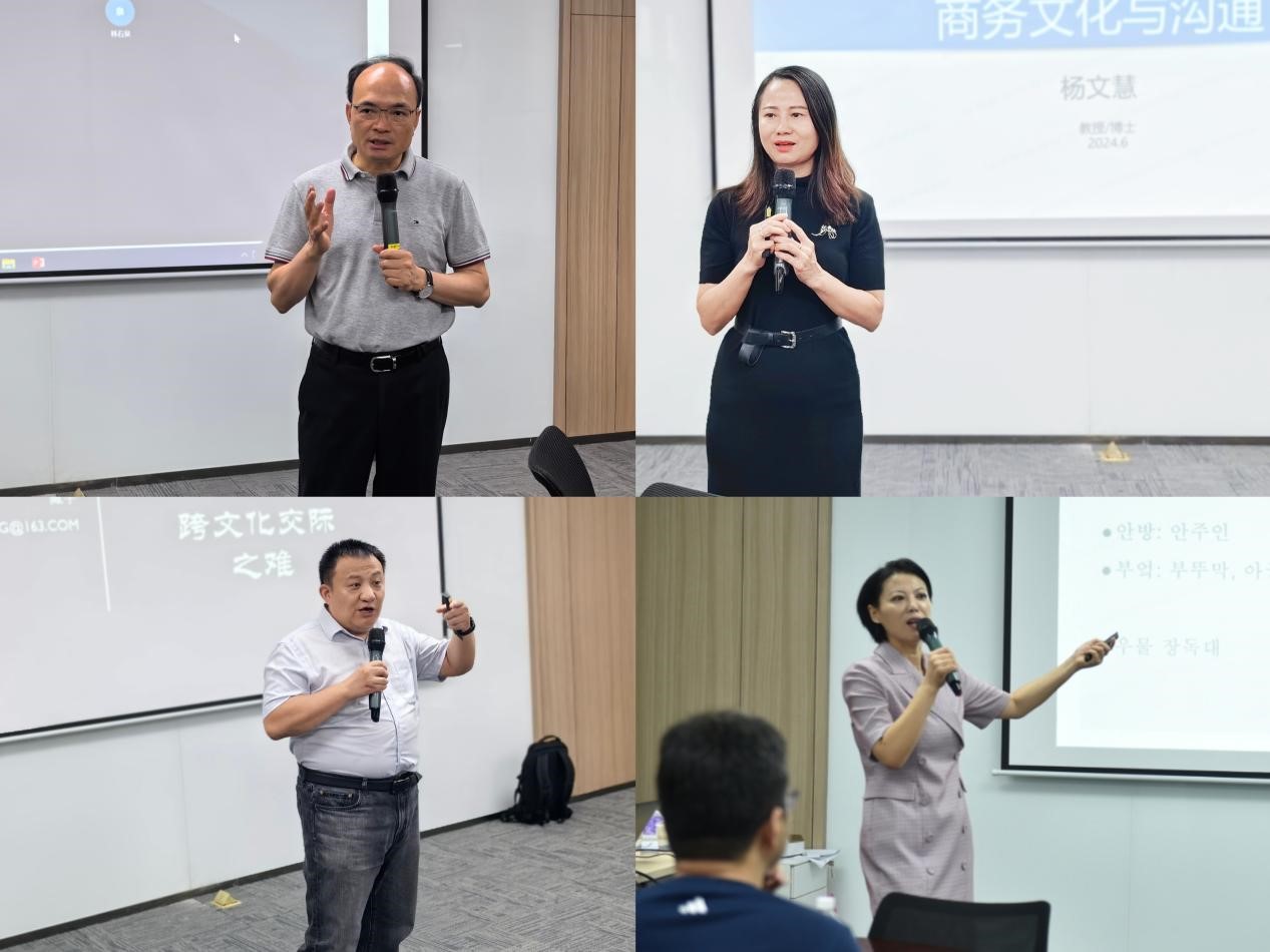 培训班邀请了广东外语外贸大学国际商务英语学院副院长杨文慧教授、西方语言文化学院副院长臧宇副教授、亚非语言文化学院杨静副教授围绕“英语国家文化”、“欧洲主要国家文化”和“东亚文化”进行专题授课,授课内容涵盖相关国家文化习俗、沟通文化、跨文化交际禁忌、策略和建议等。