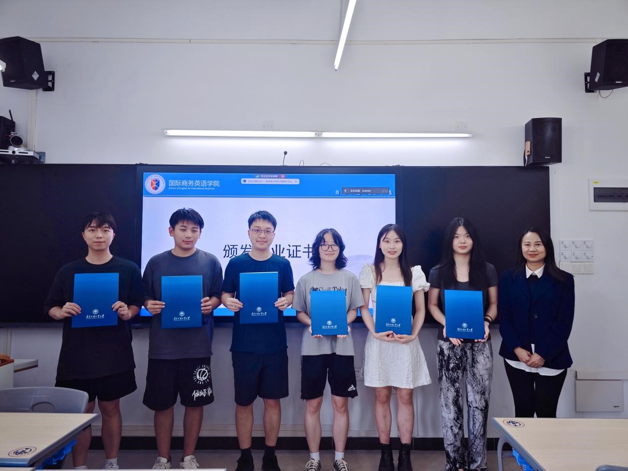 杨文慧副院长致辞。她对广外-昆士兰硕士班25期同学取得的成绩表示肯定,对项目授课教师、行政人员的辛勤付出表示感谢,祝贺25期硕士班同学顺利完成学业,并对同学们的学习、生活和安全提出了殷切嘱托,希望同学们不断追求进步,从广外走向世界,成长为对国家有用的国际化人才。杨文慧还为同学们颁发结业证书、合影留念。
