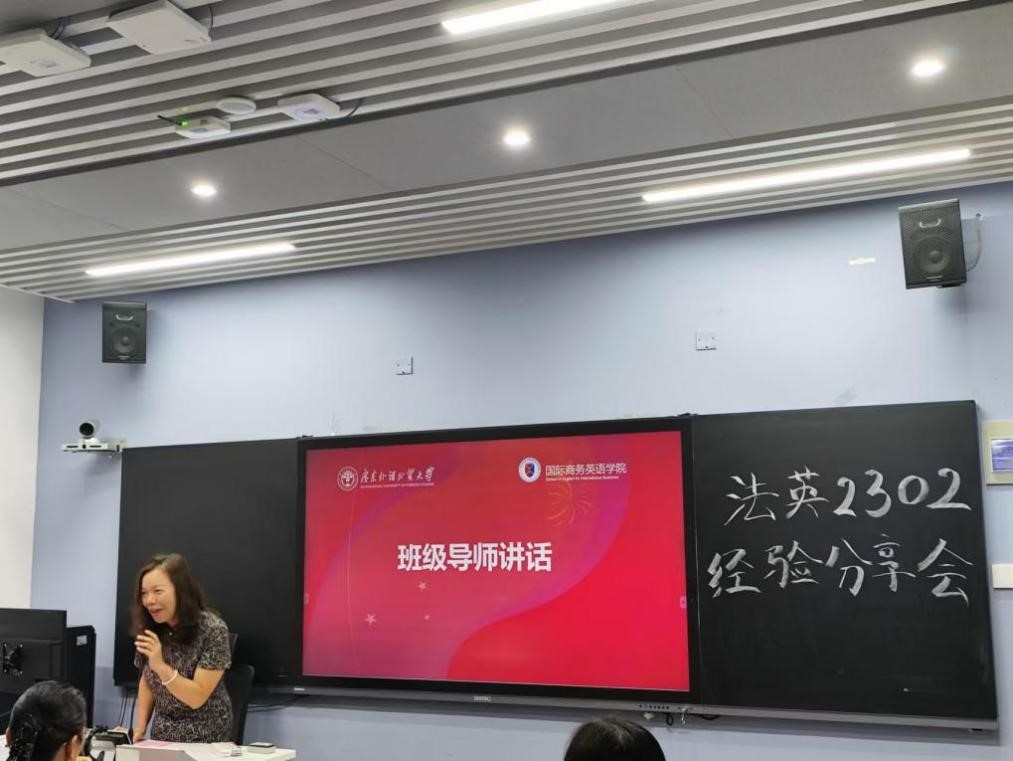 2024年10月17日晚上,商务英语(国际经济法)2302班(以下简称“法英2302班”)校外导师见面会暨学习经验分享会在一教南楼209教室顺利举行。国际商务英语学院党委杜焕君副书记、法英2302班校外导师周军伟律师、法英2302班班级导师谢静老师、2023级本科生辅导员赖志鹏老师及法英2302班朋辈导师吴婉琳出席此次会议。法英2302班同学参与此次见面分享会。