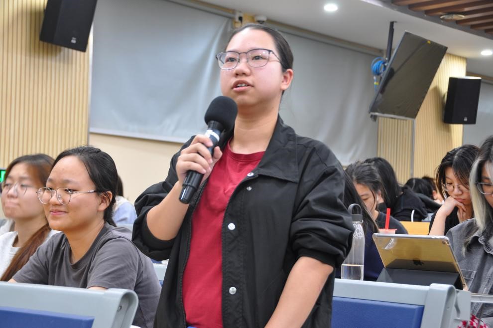 讲座最后,廖娜老师与学生们进行了互动,同学们就课程学习、获取信息的途径、职业规划等方面积极提问,廖娜老师认真倾听并一一作出解答。她告诉同学们要努力拼搏,珍惜年轻人最宝贵的财富——时间,抓住历史机遇,登上时代的航船。
