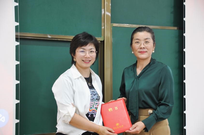 本次活动的最后,是校外导师聘任环节。商英学院党委副书记杜焕君为廖娜颁发校外导师聘书并合影留念,廖娜正式受聘为我院校外导师。